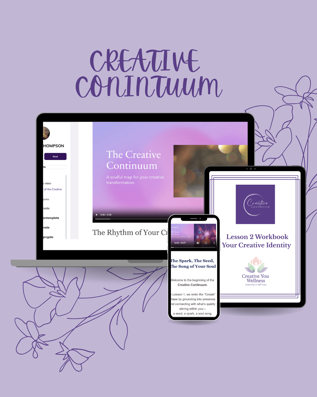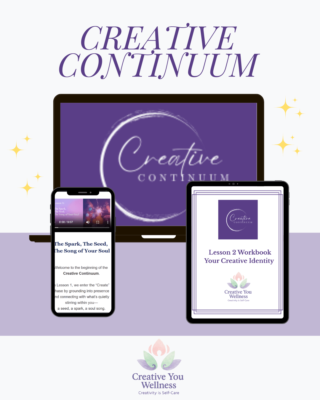 The Creative Continuum offers a judgment-free path back to your expressive spark, with practices that feel playful, doable, and deeply freeing.