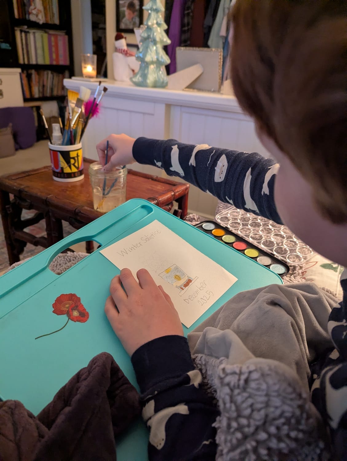 This morning my soul was lit by sitting side by side with my son and painting that same candle five years later on the Winter Solstice.